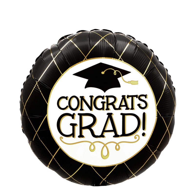 Graduation Black & Gold Satin Foil Balloon 45cm