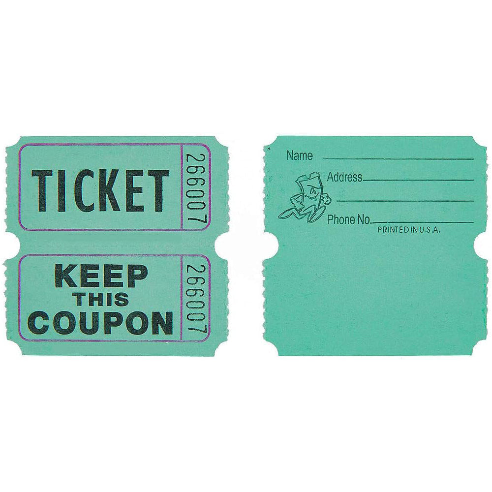 Each ticket is perforated for easy separation and distribution. The double ticket design allows for efficient entry tracking and use in raffles. The green color is vibrant and eye-catching, perfect for eco-themed events and environmental campaigns. These tickets are made from durable, tear-resistant paper, ideal for maintaining order and organization at events.