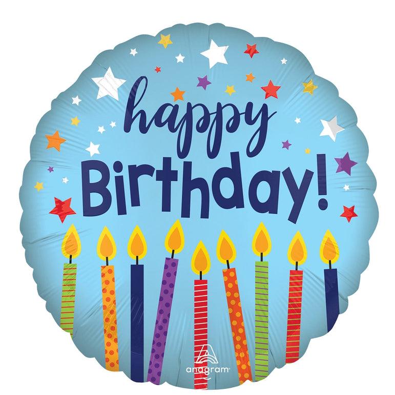 Bright, cheerful, and full of charm, this balloon is like a little party all on its own. With its colorful striped and dotted birthday candles set against a soft satin finish, it brings an instant smile to anyone who sees it.